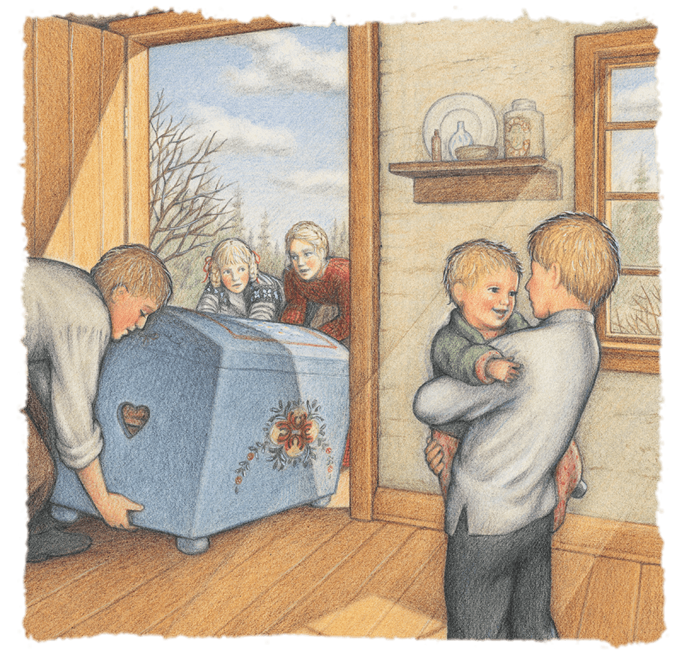 Kirsten’s Uncle Olav is Papa’s brother who left Sweden when Kirsten was three to start a new life in America. Once he arrived in Minnesota, he met Inger and they were married. He is very happy Papa’s family has come to live near his family.