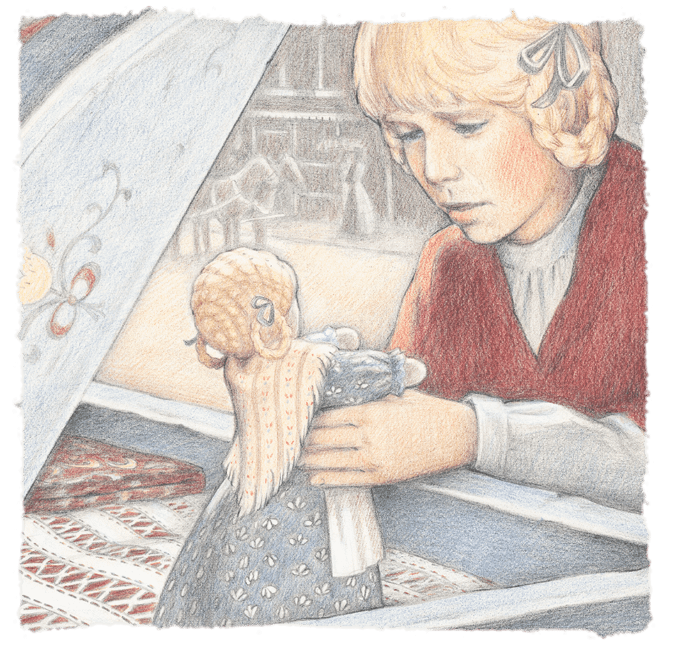 Kirsten’s younger brother Peter is five when they arrive in America, and likes to imitate Lars and Papa. Even at his young age, he’s expected to help on the farm, but he can be mischievous.